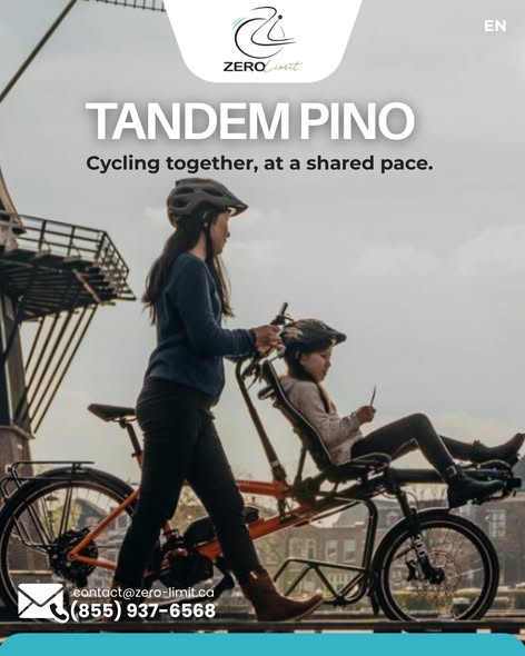 Grâce à sa configuration unique avec siège avant semi-allongé, la personne à l’avant profite d’une excellente visibilité et d’une position stable et confortable, tandis que le pilote à l’arrière assure la direction et le contrôle. Une configuration idéale pour favoriser la participation active, la communication et le plaisir de rouler à deux.