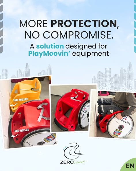 Developed by PlayMoovin’, the KneeSafe is a front rubber bumper designed for wheelchair users over 1.90 m (6’3″).